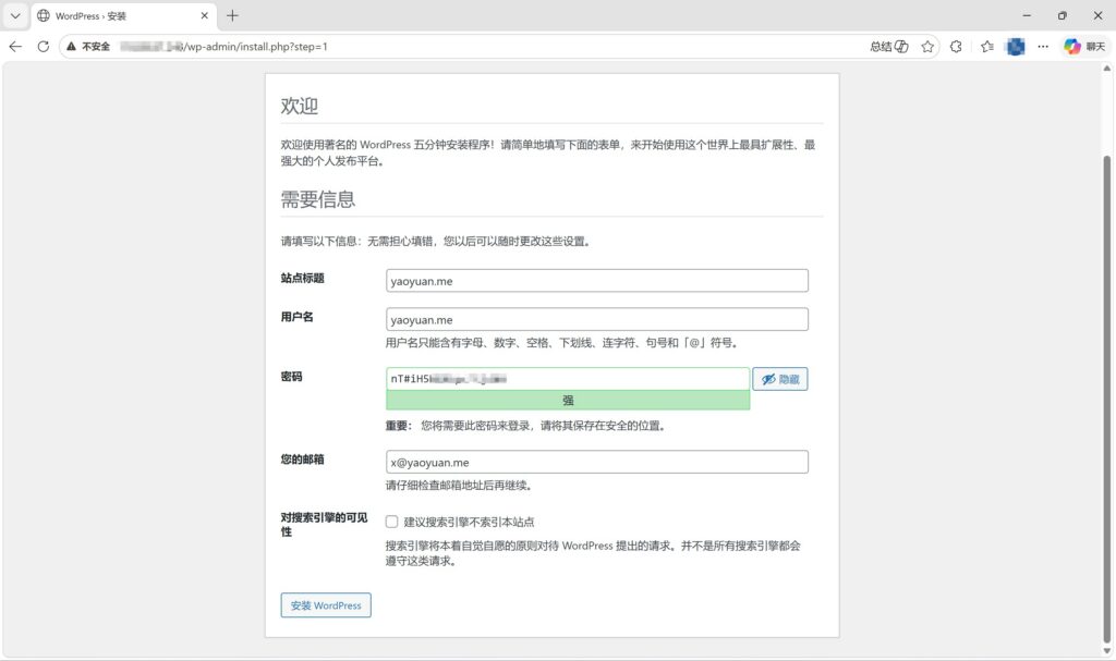 # 建议设置一个非常复杂的密码,仅用于后台维护,WordPress 运行不直接使用它。