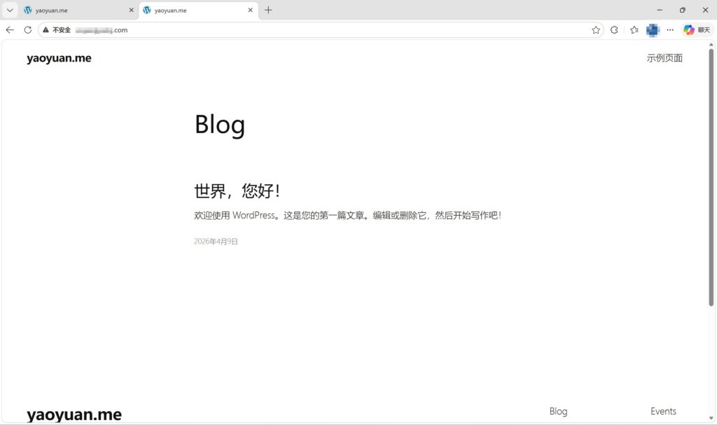 填写完,保存更改就可以通过域名访问我们的网站了。